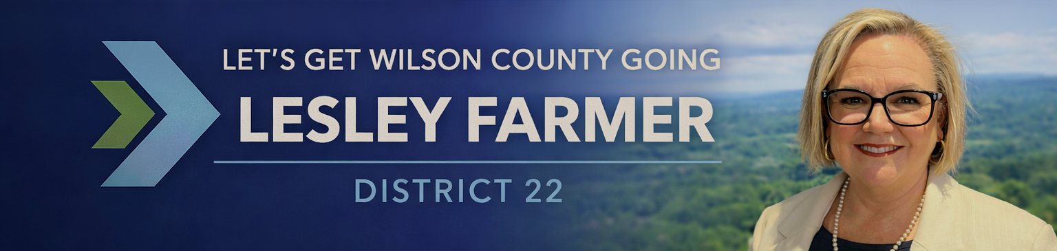 I’m Lesley Farmer — a Wilson County neighbor, mom, and problem-solver who believes our community deserves momentum, not gridlock. I’m running because I care deeply about the people who call this place home, and I’m ready to roll up my sleeves and get to work.